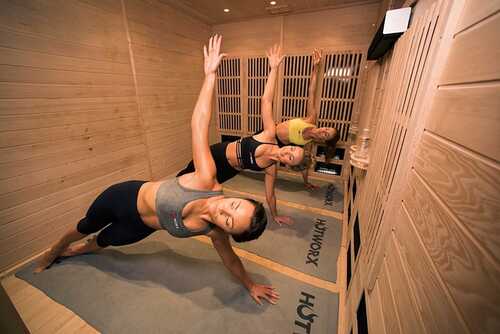You literally workout in an infrared sauna. Barre, pilates, HIIT classes… all the regular classes… but IN a sauna.
