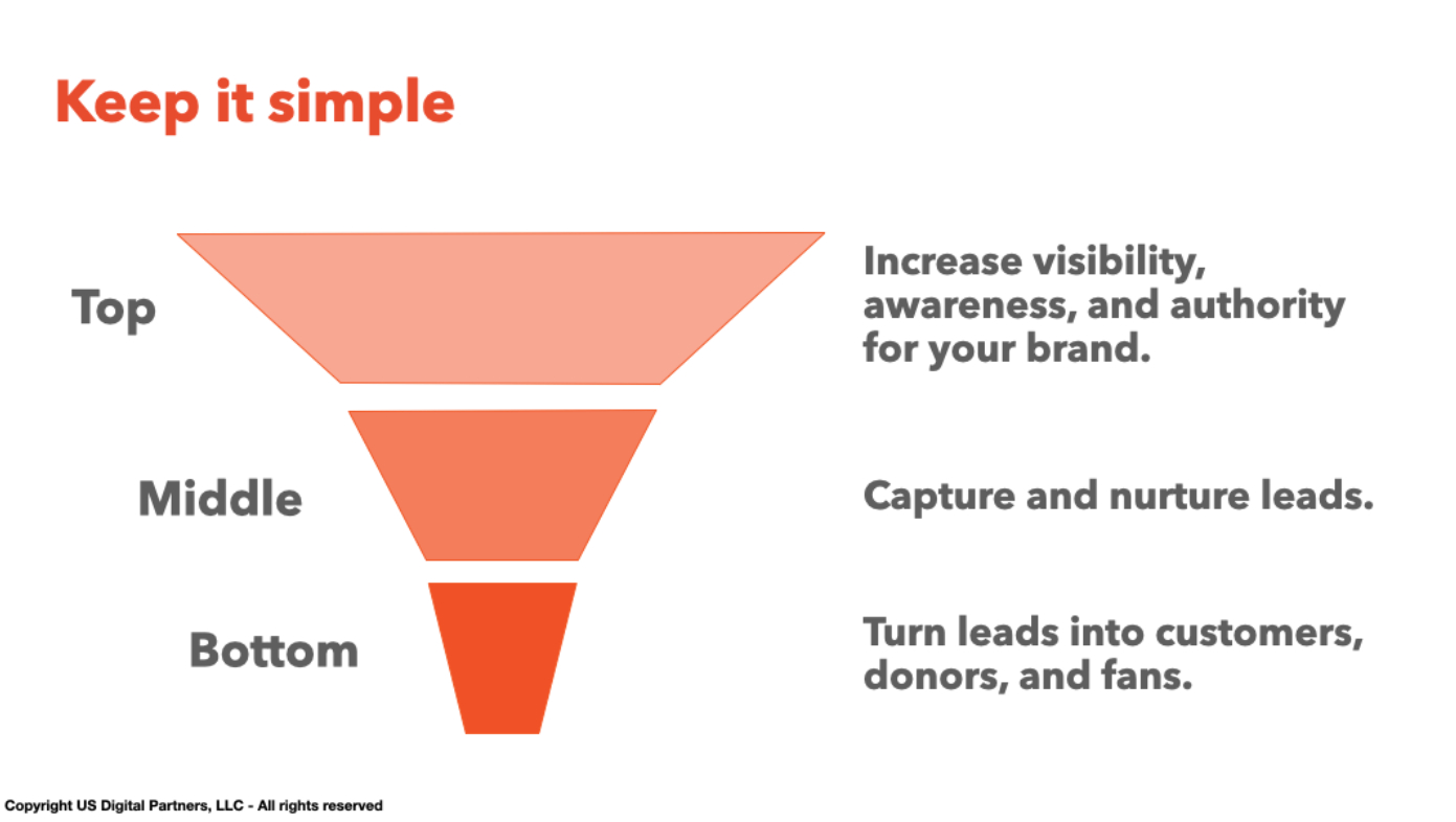 There are only 3 parts to a marketing funnel: the top, the middle, and the bottom.