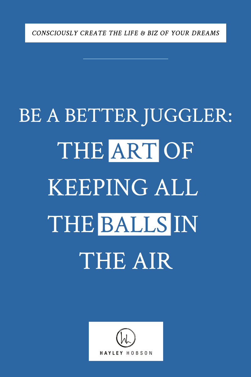 Today I want to talk to you about becoming a master juggler. How to have 6 balls in the air at once and make it look easy. Yeah, as women we DO wear many hats. As partner, spouse, daughter, sibling, friend, business partner, upline, crossline, do-good neighbor…maybe even cook, house-cleaner, family accountant… I get it. You’re doing it ALL.